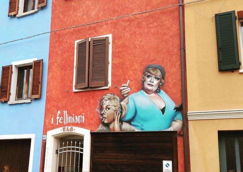 Модный район Римини – Сан Джулиано. Здесь когда-то жили бедные рыбаки. На этих тихих улочках Феллини находил утешение и спокойствие. В небольшом доме он мечтал жить на старости лет. Мечта его сбылась, он купил дом, а пожить в нем не успел. Жизнь и фильмы гениального режиссера запечатлены на стенах домов в виде фресок.