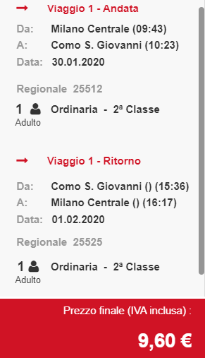 З Мілана до о.Комо можна недорого доїхати поїздом компанії Trenitalia – €4,8 в один бік. Час у дорозі – 40 хв. Є великий вибір часу поїздки.