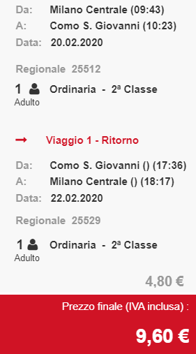 До озера Комо можна дістатися поїздом компанії Trenitalia – €4,8 в один бік та €9,6 у два боки. Час у дорозі – 40 хв.