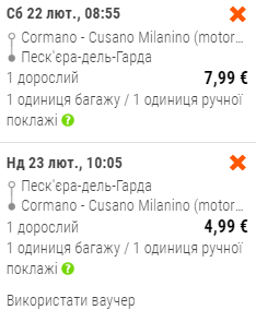 Наприклад, вартість квитків на озеро Комо на дати 20-22 лютого у дві сторони – €9,6. Організувати поїздку на озеро можна також одним днем.