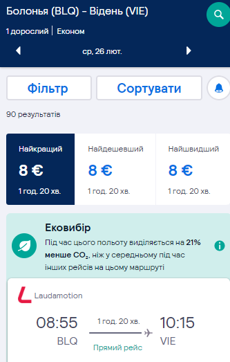 Дата: 26 лютого. Ціна квитка в один бік — €19