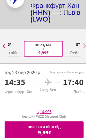 Дата: 23 березня. Ціна квитків в один бік — €10 для учасників wizz-клубу та €15 для всіх інших