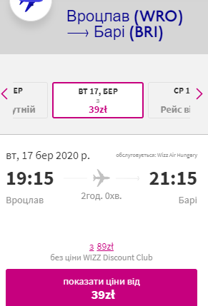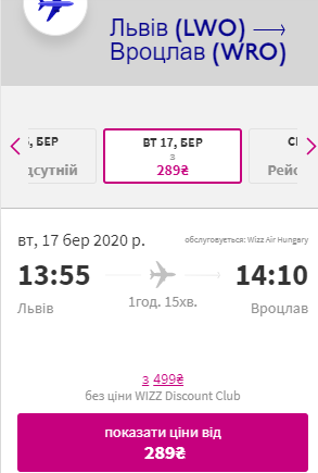 Дата: 17 березня. Вартість квитків в один бік — €11 для учасників wizz-клубу та €19 для всіх інших