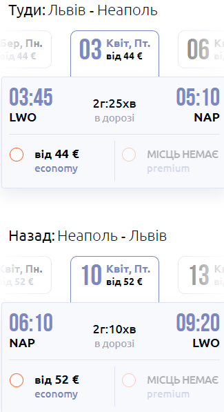- Частота польотів: 2 рази на тиждень — щовівторка та щоп’ятниці