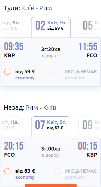 - Частота польотів: 2 рази на тиждень — щопонеділка та щоп’ятниці