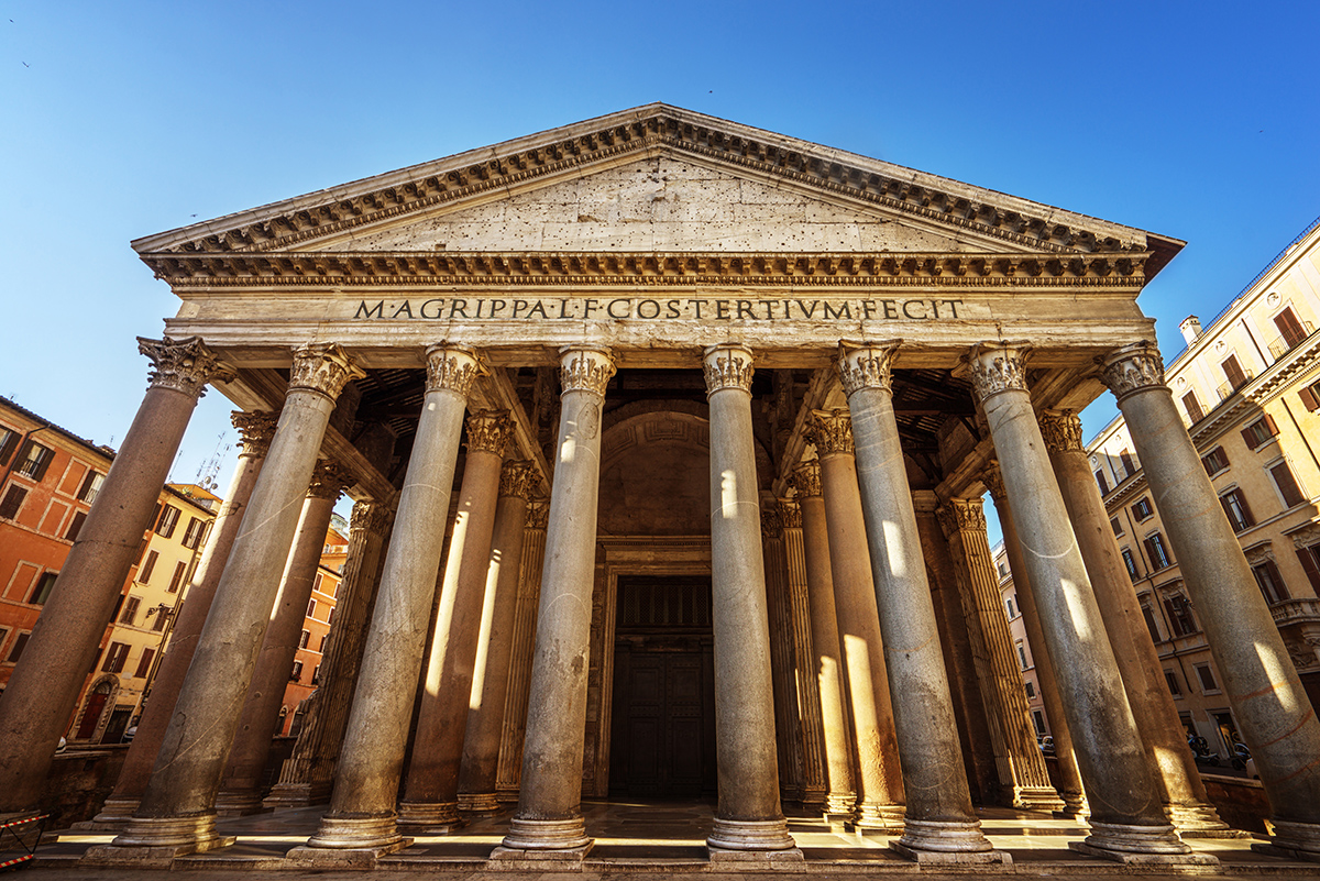 От фонтана де Треви идите по старинным улицам к еще одной достопримечательности Рима – Пантеону (Piazza della Rotonda). Его построили в 126 году для семи римских богов. Дорога займет у вас не больше 10 минут, если не отвлекаться на другие архитектурные красоты. Пантеон изначально был языческим храмом, и со временем он стал христианской базиликой. Вход в Базилику платный – €2, но за лаконичным внешним видом фасада скрывается невероятное богатство в виде самого большого купола не только в Европе, но и во всем мире, в центре которого открытый небу круг. Попадающий через него свет переливается разными красками внутри храма и наполняет его магическим эффектом. Здесь похоронены знаковые для Италии люди – короли Виктор Эммануил II, Умберто I, а также живописец, график, архитектор Рафаэль Санти.