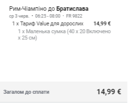 Дата: 3 червня. Ціна квитка — €15. Авіакомпанія: Ryanair.