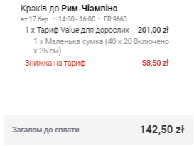 Вартість усіх квитків у два боки — €72 для членів wizz-клубу та €82 для всіх інших. По дорозі пересадки, без ночівель!