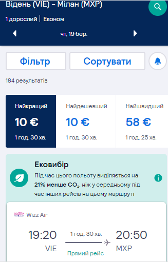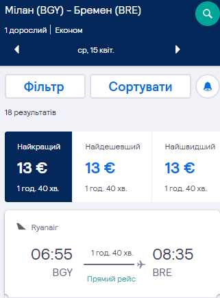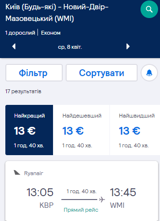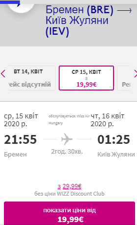 За наведеним принципом можна підібрати необхідні дати подорожі та забронювати квитки на сайтах Ryanair, Wizz Air, Kiwi.com або Skyscanner.
