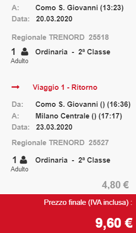 До озера Комо можна дістатися поїздом компанії Trenitalia – €4,8 в один бік та €9,6 у два боки. Час у дорозі – 40 хв. Є великий вибір дат та часу подорожей.
