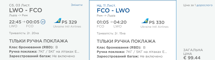 Львів – Рим, 27 жовтня- 4 листопада – €99 у два боки