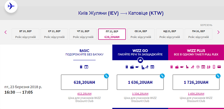Первая остановка в нашем путешествии – Катовице. Прилетаем 23 марта на крыльях авиакомпании Wizz Air. Участники Wizz-клуба заплатят за перелет ₴412 или €13, а все остальные – ₴628 или €19.