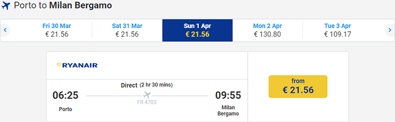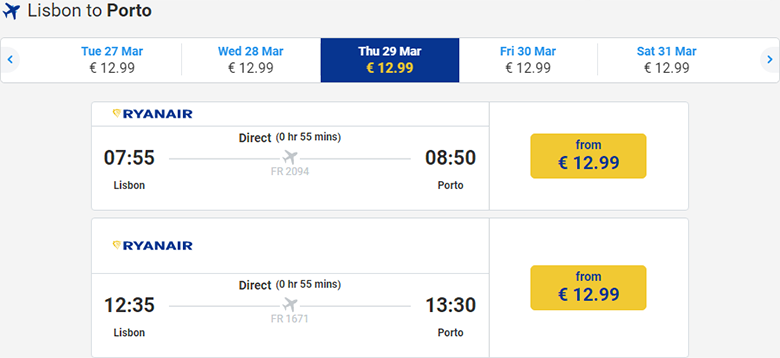 Порту – следующая остановка. Вылетаем 29 марта. Время можете выбрать сами – 07:55 или 12:35. Стоимость билета составит €13.