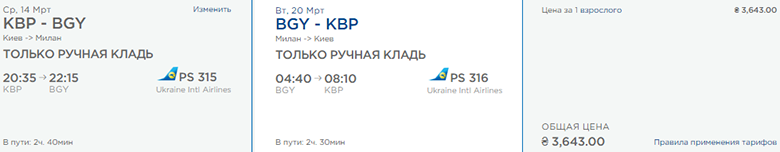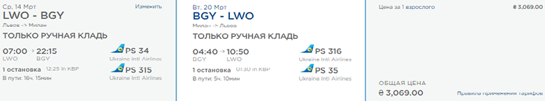 Период путешествия – 14-20 марта. За билеты в обе стороны нужно будет заплатить 3643 грн или €104.