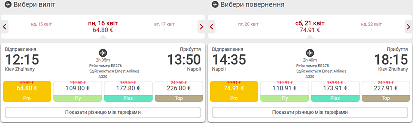 Період подорожі – 16-21 квітня. За квитки туди-назад необхідно буде сплатити €140. Вилітаємо з Жулян, прилітаємо в міжнародний аеропорт Неаполя.