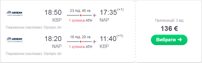 Перелет Киев – Неаполь с пересадкой в Афинах. Даты – 7-15 декабря.