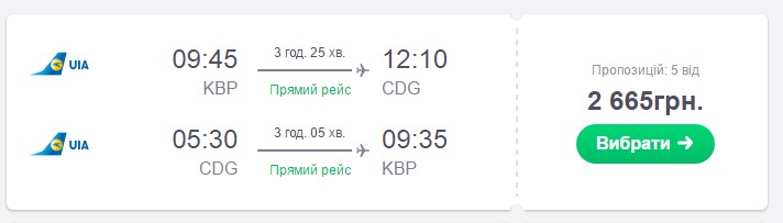 Прямой перелет Киев – Париж 21-24 марта в обе стороны – 93 евро.