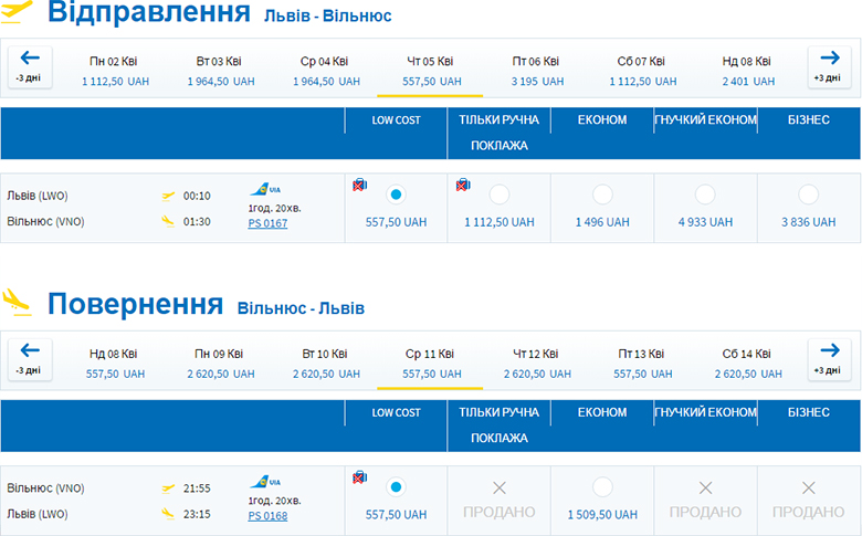 Итак, Вильнюс 5-11 апреля, €38 в обе стороны.