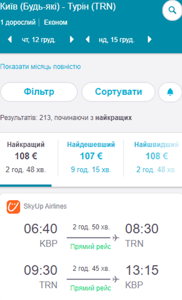 Дати – 12-15 грудня. Вартість квитків у дві сторони – €108.