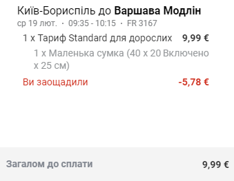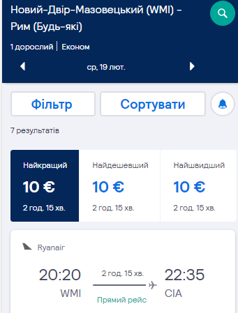 Дата: 27 лютого. Вартість перельоту в один бік — €11.