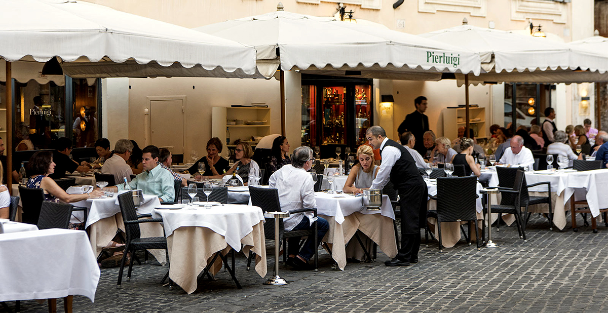 Очень престижный ресторан, с 3 звездами Michelin. Изыски средиземноморской кухни, приготовленные с фантазией. Интерьер 17 века и фарфоровая посуда сочетаются с панорамой Рима. Дресс-код: пиджак – для мужчин, элегантность – для всех.