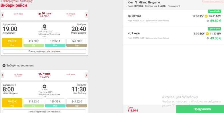 Київ – Мілан, 30 травня-7 червня – 118,5 євро у два боки