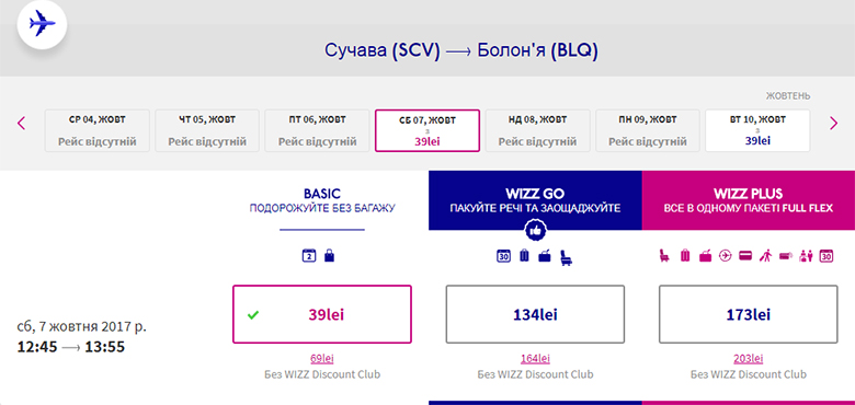 Первый перелет – Сучава – Болонья. Члены Wizz Discount Club летят за €19 в обе стороны, а все остальные – за €33 (туда-обратно). Запланировать путешествие можно, например, на 7-14 окября.