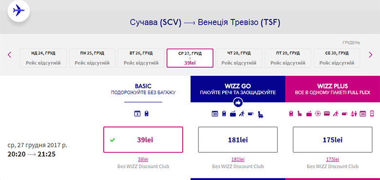 Еще один вариант – Сучава – Венеция. Если вы не планируете праздновать Новый год дома, то о билетах стоит позаботиться заранее, ведь в преддверии праздника как правило свободных мест в самолетах уже нет. Даты путешествия – 27 декабря – 7 января. Есть также даты в ноябре и декабре. Стоимость – €30 в обе стороны для всех и €19 – для участников Wizz Discount Club.