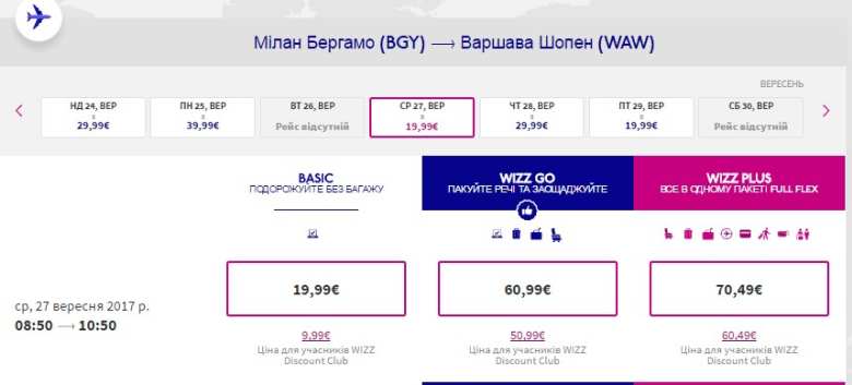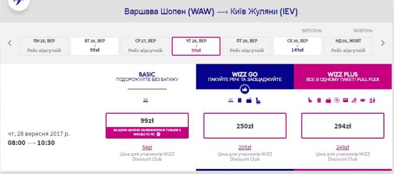 Варшава-Київ – 28 вересня, €13 євро в обидва боки (Wizz club)