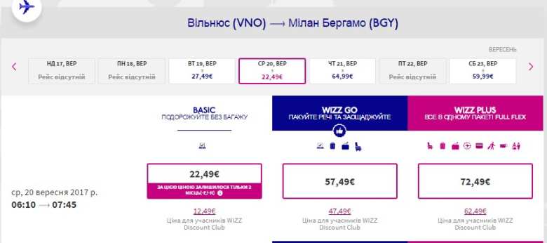 Вільнюс-Мілан – 20 вересня, €12,5 євро в обидва боки (Wizz club)