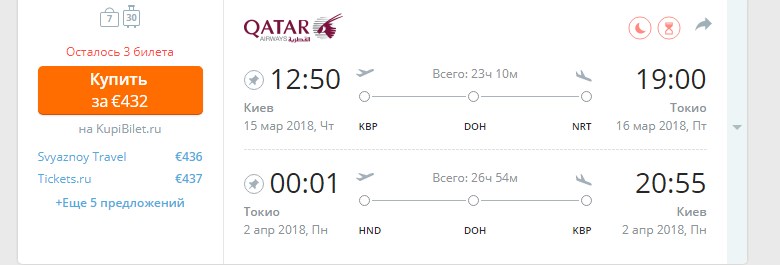 Є пропозиція летіти у Токіо 15 березня – 2 квітня за 432 євро.