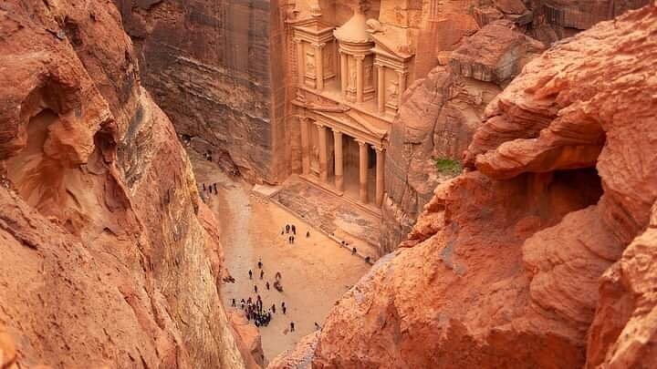 Петра, высеченная из песчаника сокровищница, расположилась в живописной Иордании. Это одно из самых популярных исторических мест, поражающее воображение путешественников со всего мира. Город Петра расположен в долине Арава, окруженный величественными горами, на высоте более 900 метров над уровнем моря. Климат здесь знойный и засушливый, с жарким летом и мягкой зимой.