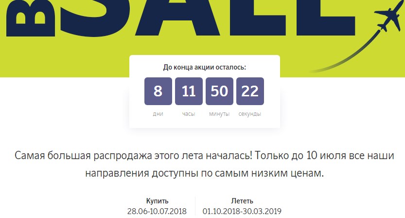Период акции Big Sale от airBaltic – до 10 июля 2018 г. Период путешествий: 01 октября 2018 г. – 30 марта 2019 г.