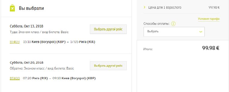 Акционные направления – от 15 евро в одну сторону: Рига – Лиепая — 15 евро, Рига – Вильнюс- 19 евро, Вильнюс – Таллинн — 19 евро и др. Стоимость акционных билетов из Киева и Одессы — от 69 евро в одну сторону.