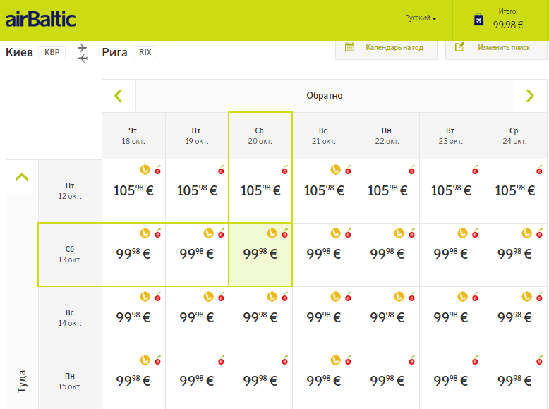 Киев – Рига, 13-20 октября — 99,98 евро. В стоимости билета – ручная кладь до 8 кг.