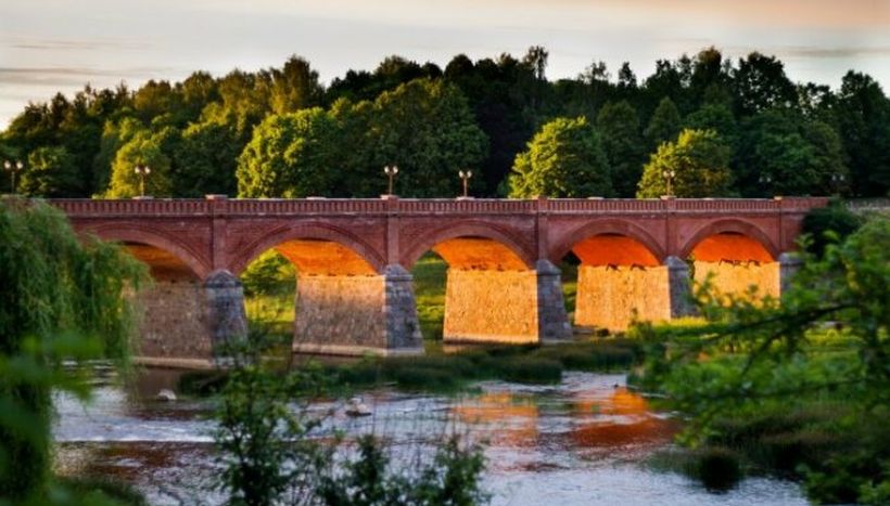 Кирпичный мост через Венту, воздвигнутый в конце 19 в., обладает протяженностью более 160 м. Он в числе наиболее длинных кирпичных мостов Европы. Восстановлены старинные фонари на декоративных столбах. Естественно, такой впечатляющий объект не может не использоваться в кинематографе. Найдете его в фильмах «Мост», «Проделки Эмиля» и др.
