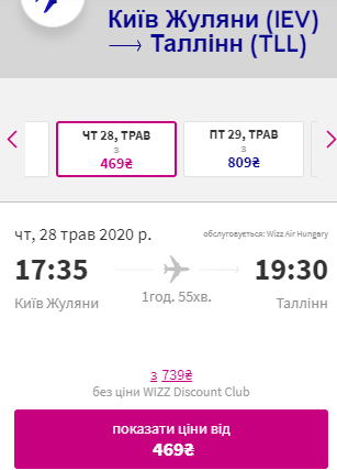 Дати: 28 травня – 1 (або 3) червня. Ціна – €34 для учасників wizz-клубу та €52 для всіх