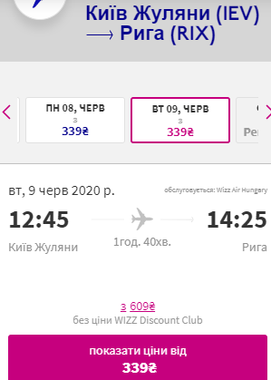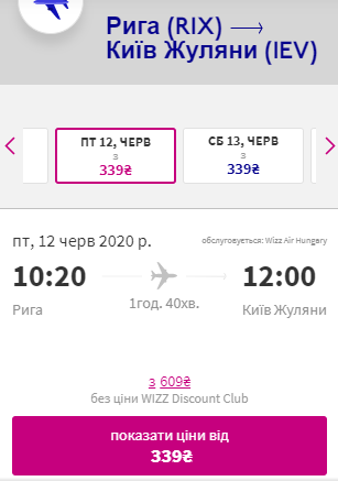 Дати: 9-12 червня. Вартість квитків у два боки – €23 для учасників wizz-клубу та €41 для всіх