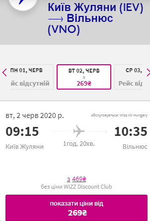Дати: 2-6 червня. Ціна квитків у дві сторони – €19 для учасників wizz-клубу та €29 для всіх