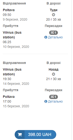 Полтава — Вільнюс, 9-14 березня — 398 грн.