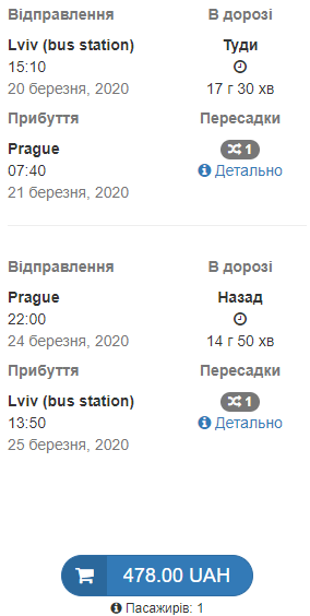 Дати: 20-25 березня. Ціна квитків у дві сторони — 478 грн