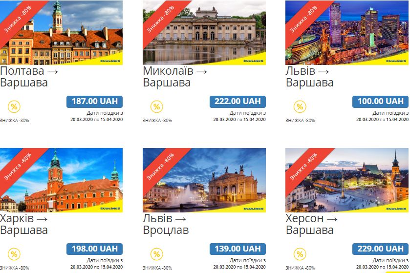 Дати: 27-30 березня. Ціна квитків у два боки — 200 грн