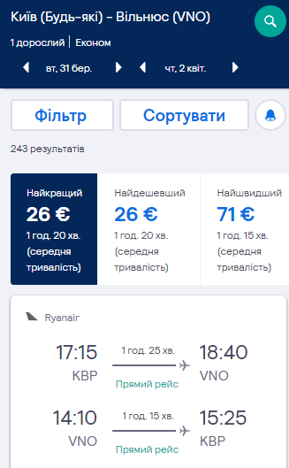 З Києва у Вільнюс можна дістатися прямими рейсами Ryanair, Wizz Air або МАУ.