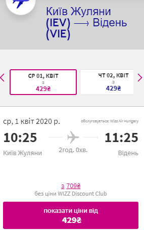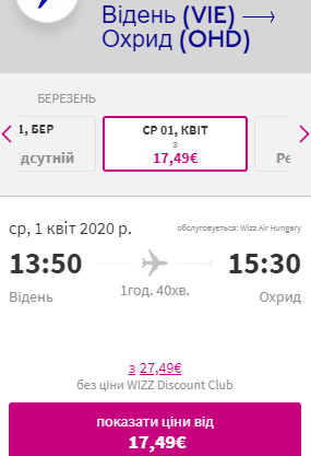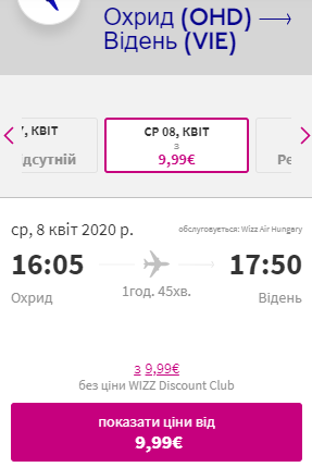 Дата: 1 квітня. Ціна квитка в один бік — €16 для учасників wizz-клубу та €27 для всіх інших.