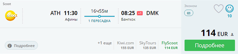 Далі переліт Афіни – Бангкок (114 євро в один бік).