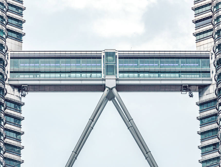 Башти можуть встояти навіть при втраті трьох із шістнадцяти несучих колон. Додаткову безпеку надає повітряний міст, поставлений на гігантських шарнірних опорах, оскільки башти розгойдуються і міст не можна жорстко закріплювати.