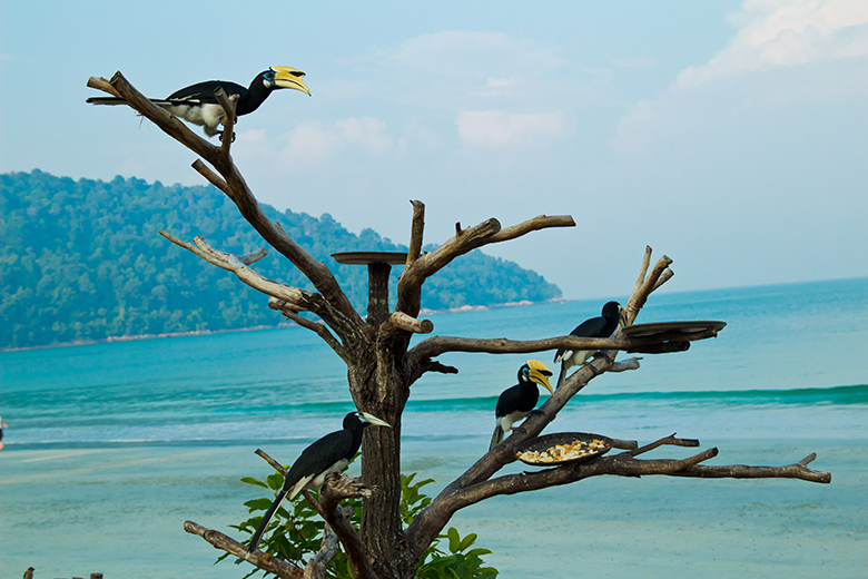 Пангкор – небольшой уютный остров на западном побережье Малайзии. Он стал туристическим благодаря птицам-носорогам. Эти черные птицы с большими желтыми клювами и роговыми наростами на них стали визитной карточкой Малайзии.
