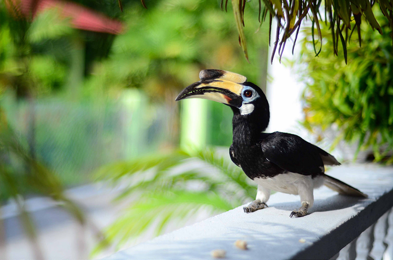 Птицы-носороги или хорнбилы (англ. hornbill – «бычий рог») на острове повсюду и считают человеческую инфраструктуру частью своей среды обитания: без боязни садятся на веранды гестхаусов, на столики кафе, раскачиваются на деревьях под окнами, дерутся за плоды, оглушительно орут в 5 утра.