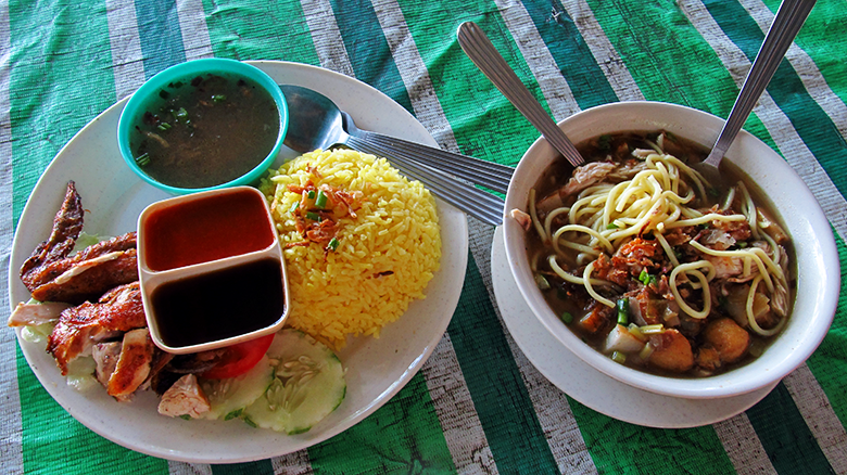 Большой выбор кафе с разнообразной кухней. Попробуйте традиционную кухню: закажите «наси лемак» – комплексное блюдо из риса с острым соусом «самбал», мяса, орехов, анчоусов, яйца, овощей. Очень вкусный и «телур Патайя» – рис, завернутый в омлет. Есть и европейская кухня: на завтрак – омлет с овощами и кофе, на ужин – картошка фри и бургеры, к слову, невероятно вкусные!