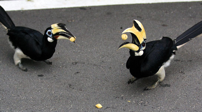 Птицы-носороги или хорнбилы (англ. hornbill – «бычий рог») на острове повсюду и считают человеческую инфраструктуру частью своей среды обитания: без боязни садятся на веранды гестхаусов, на столики кафе, раскачиваются на деревьях под окнами, дерутся за плоды, оглушительно орут в 5 утра.